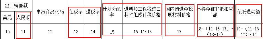 (二)《汇总表》《汇总表》大幅精简,由37栏精简到19栏。1.出口额信息删除冗余栏次,只保留4项内容。2.删除“抵减额”,通过第8、13、14、16栏调整不得免征和抵扣税额、免抵退税额。