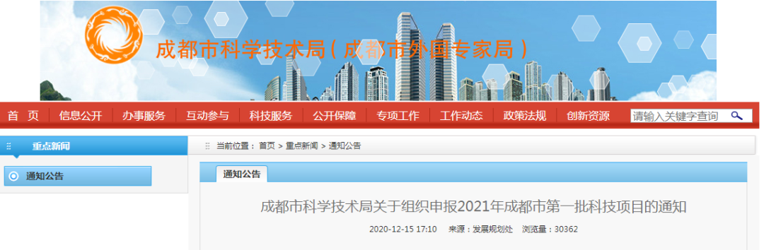附:《成都市科学技术局关于组织申报2021年成都市第一批科技项目的通知》